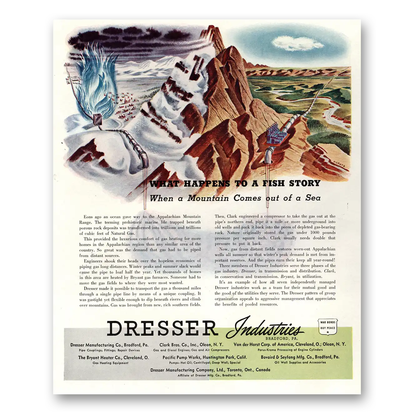 This is an original 1944 Dresser Industries print ad published by Dresser Industries.