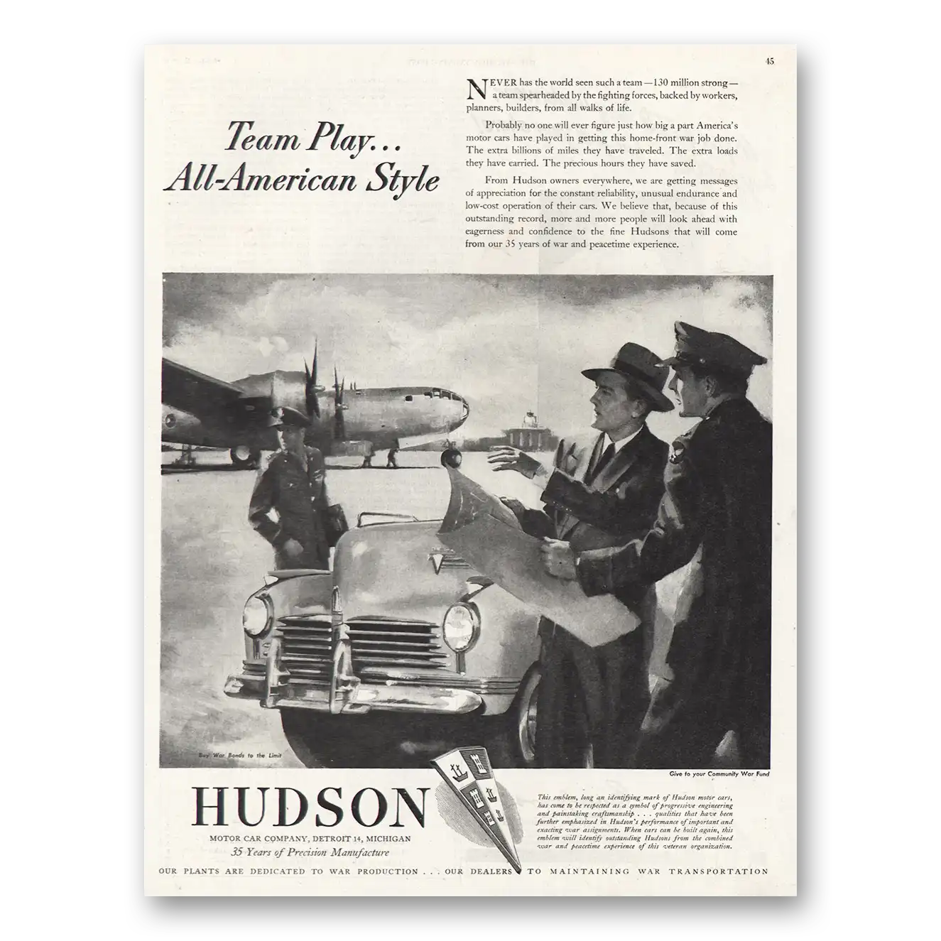 1944 Hudson Motor Car Print Ad | Team Play1944 Hudson Motor Car Print Ad | Team Play