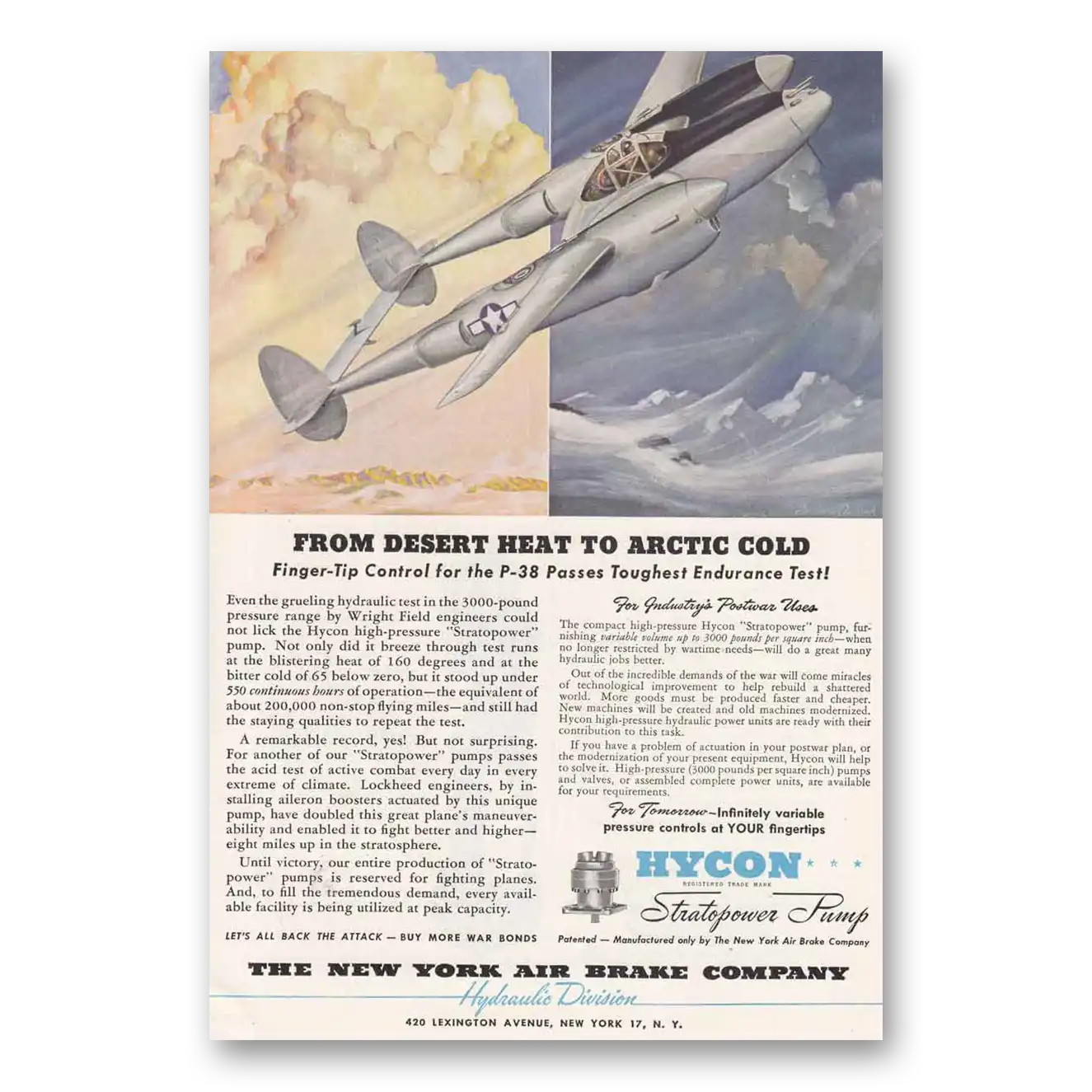 This is an original 1944 Hycon print ad published by New York Air Brake Company.