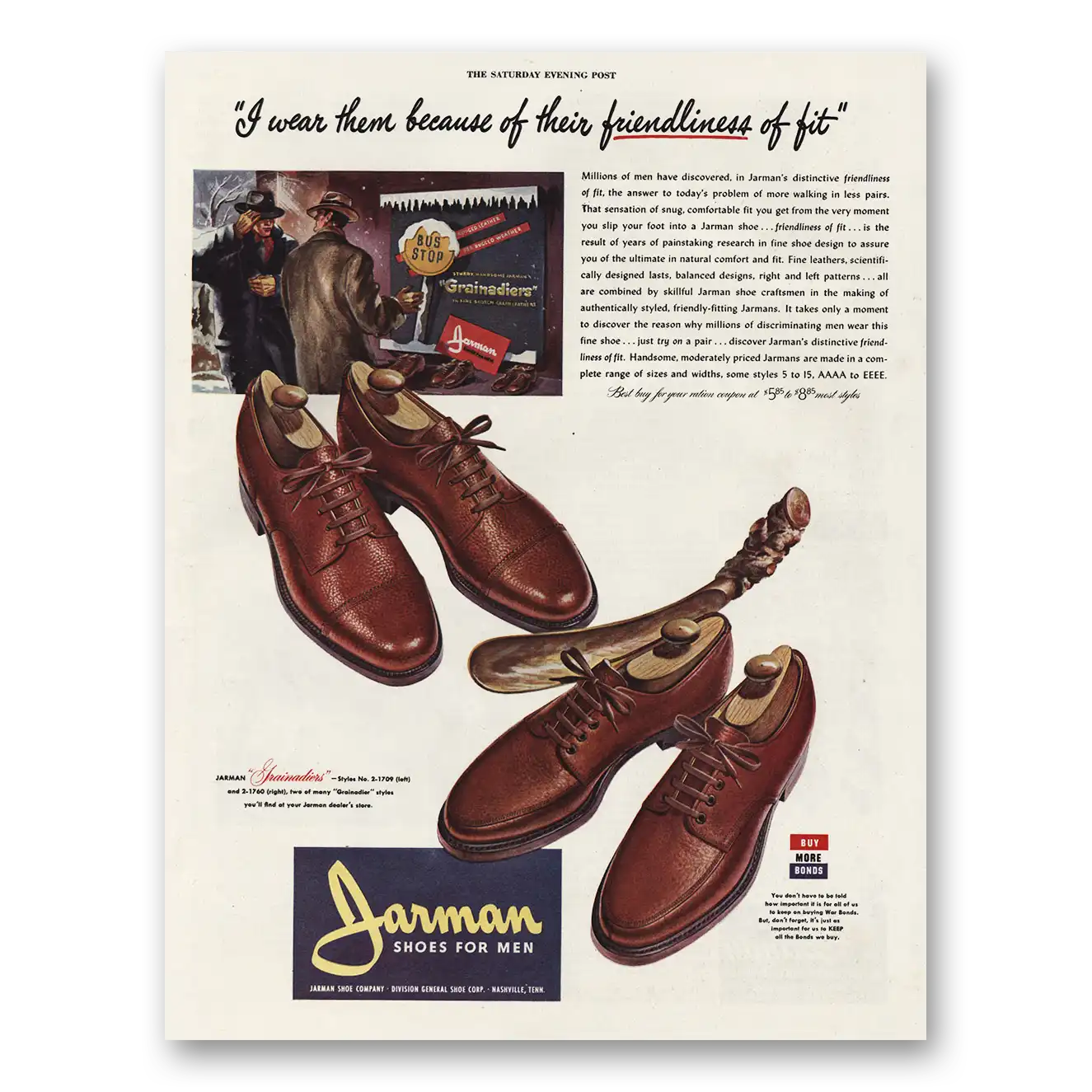 1944 Jarman Shoes Print Ad | Friendliness Fit