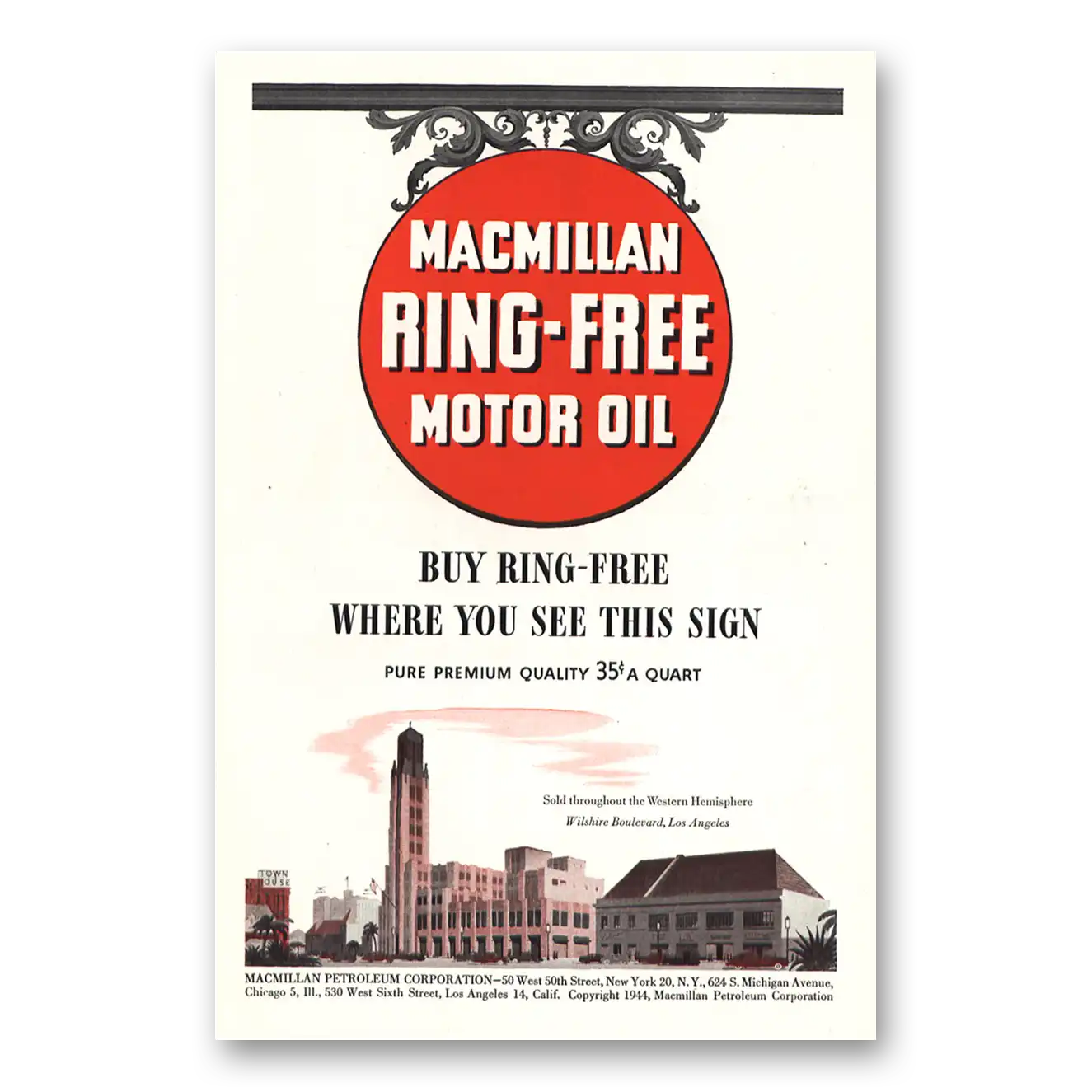 1944 Macmillan Oil Print Ad | Wilshire Boulevard