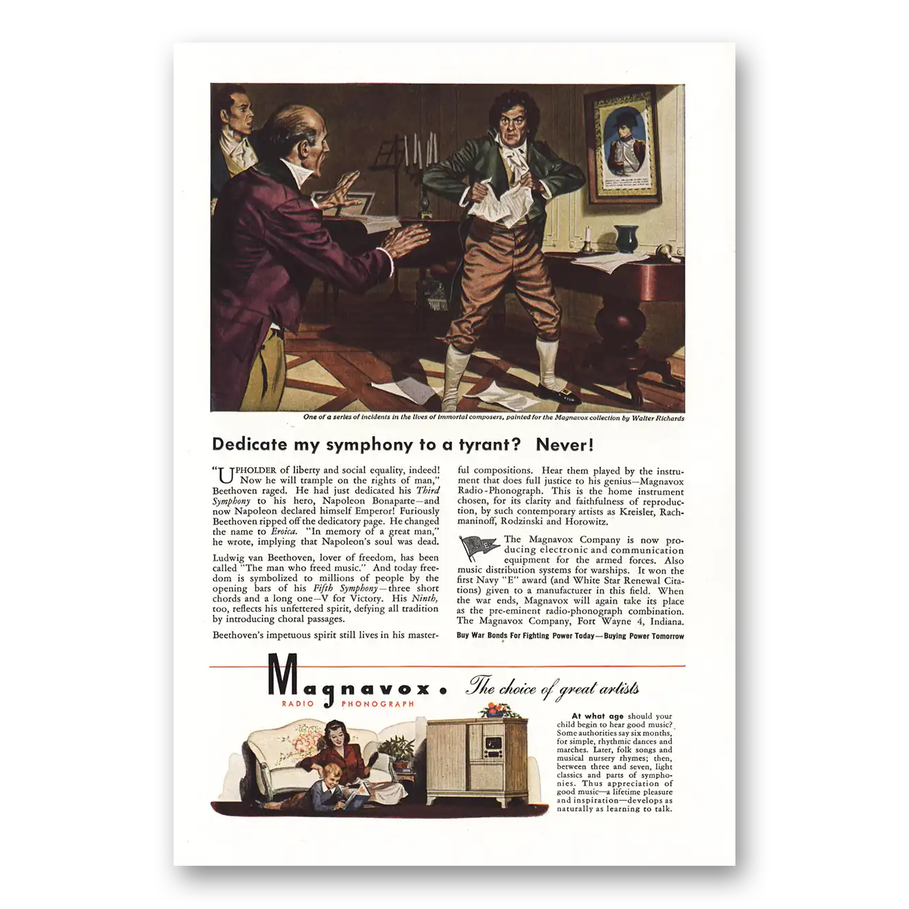 1944 Magnavox Radio Phonograph Print Ad | Beethoven