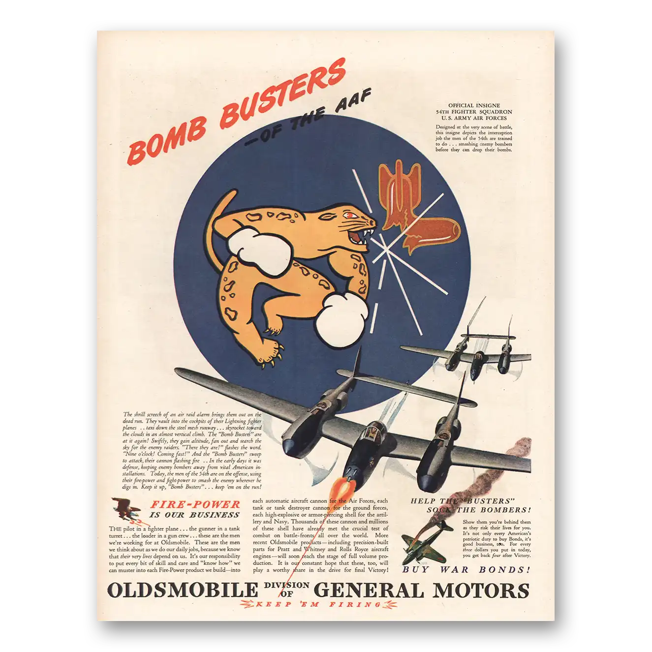 1944 Oldsmobile Print Ad | Bomb Busters Of The Aaf