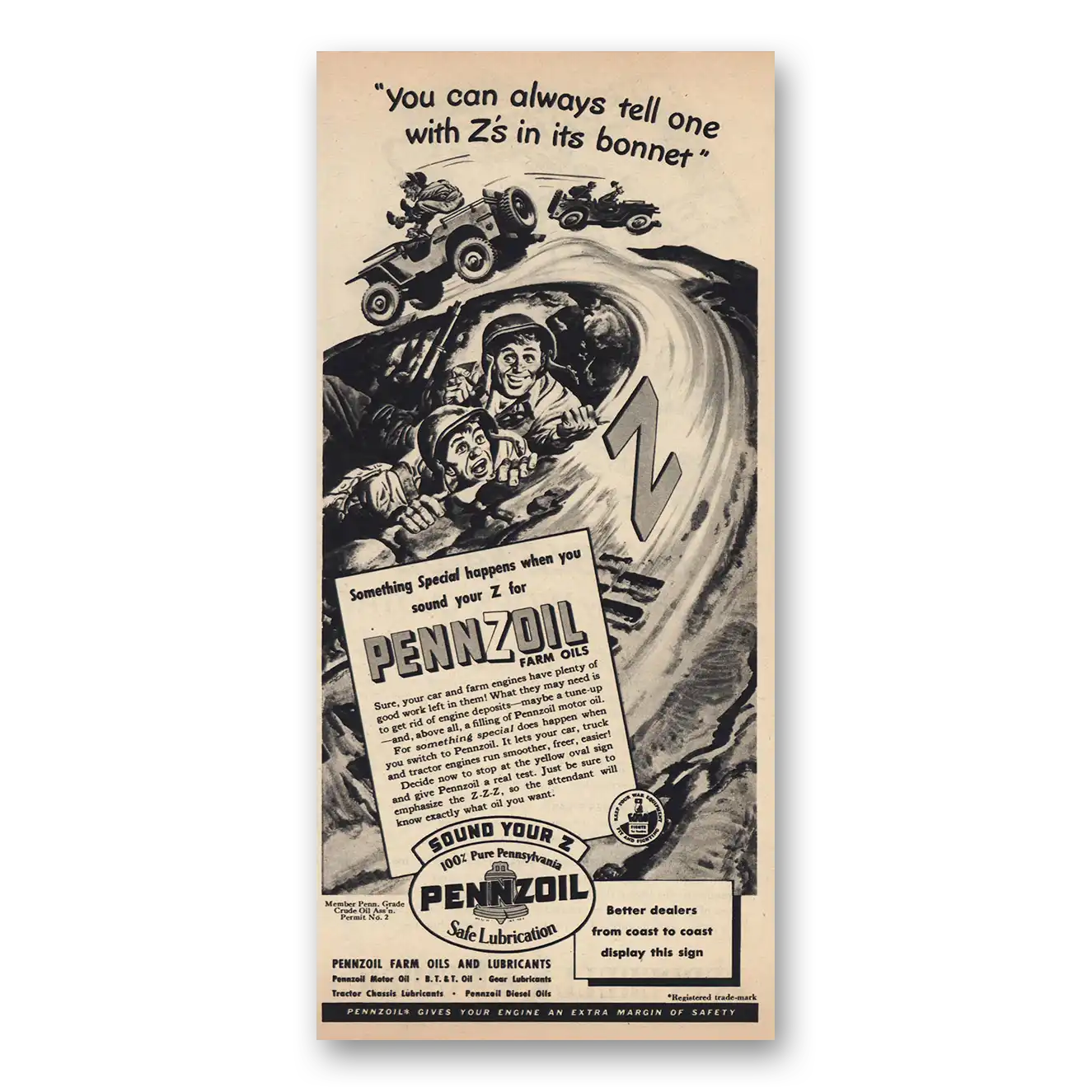 1944 Pennzoil Print Ad | Zs In Bonnet1944 Pennzoil Print Ad | Zs In Bonnet