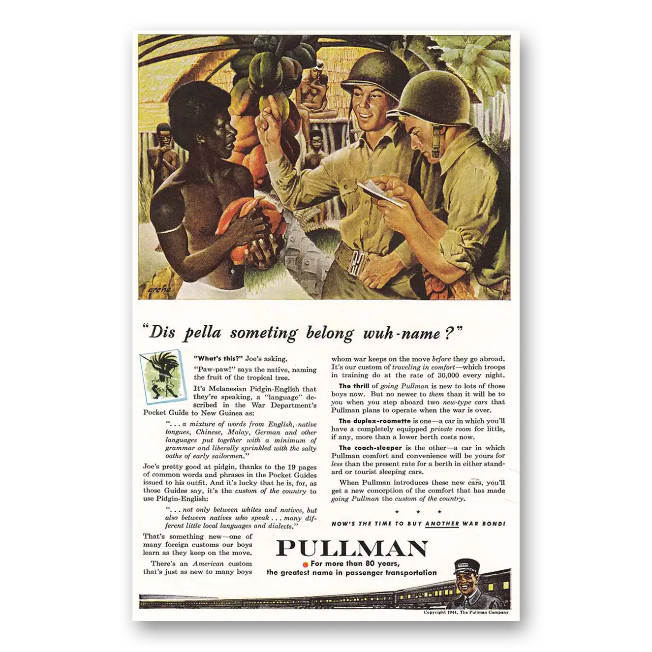 This is an original 1944 Pullman print ad published by Pullman.