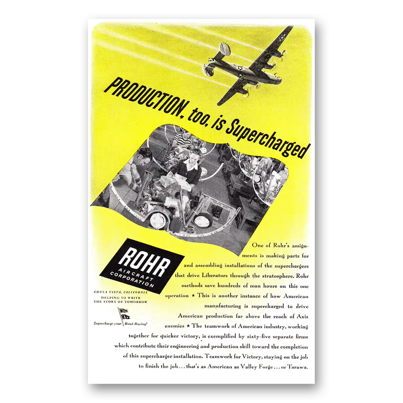 This is an original 1944 Rohr Aircraft print ad published by Rohr Aircraft.