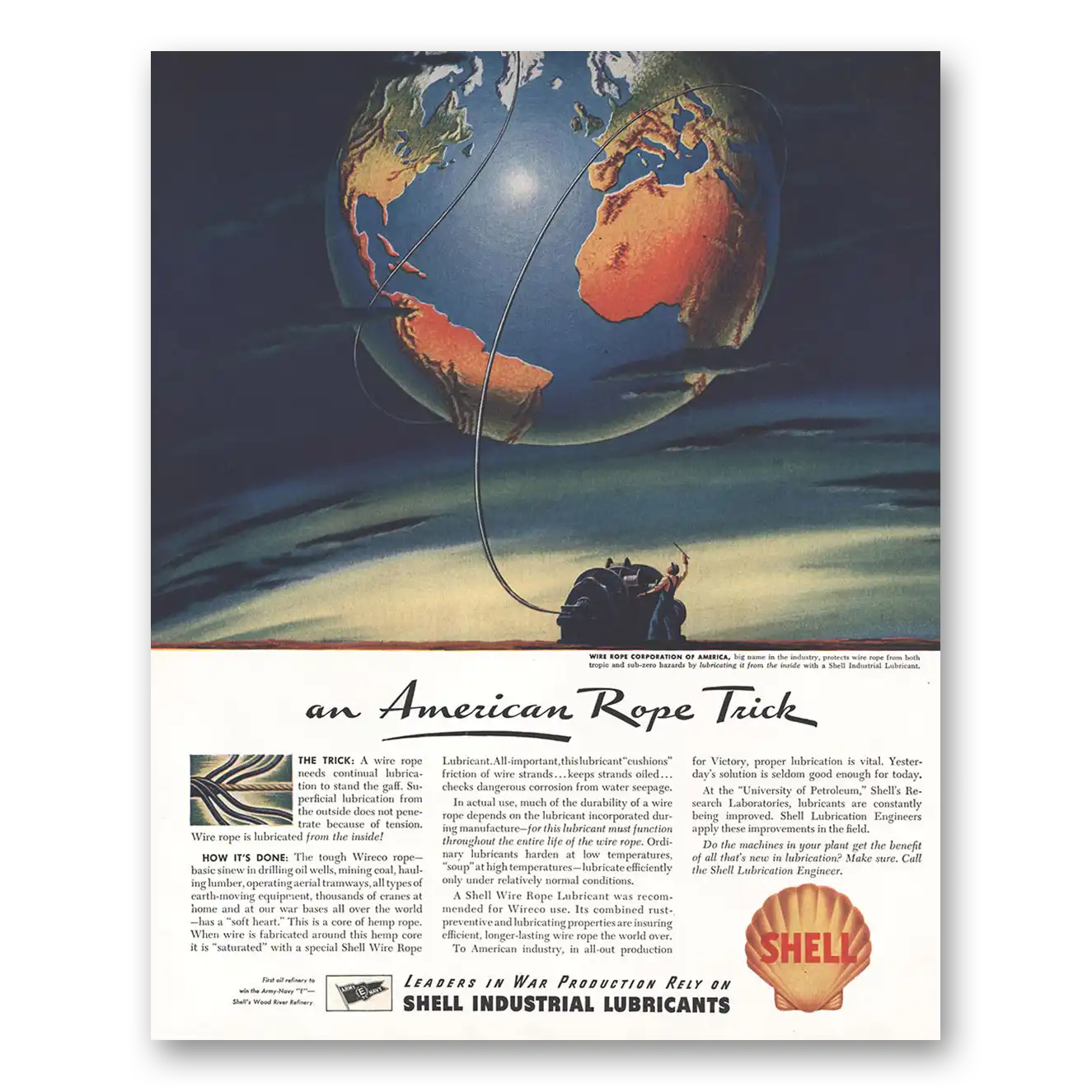 1944 Shell Lubricants Print Ad | Rope Trick