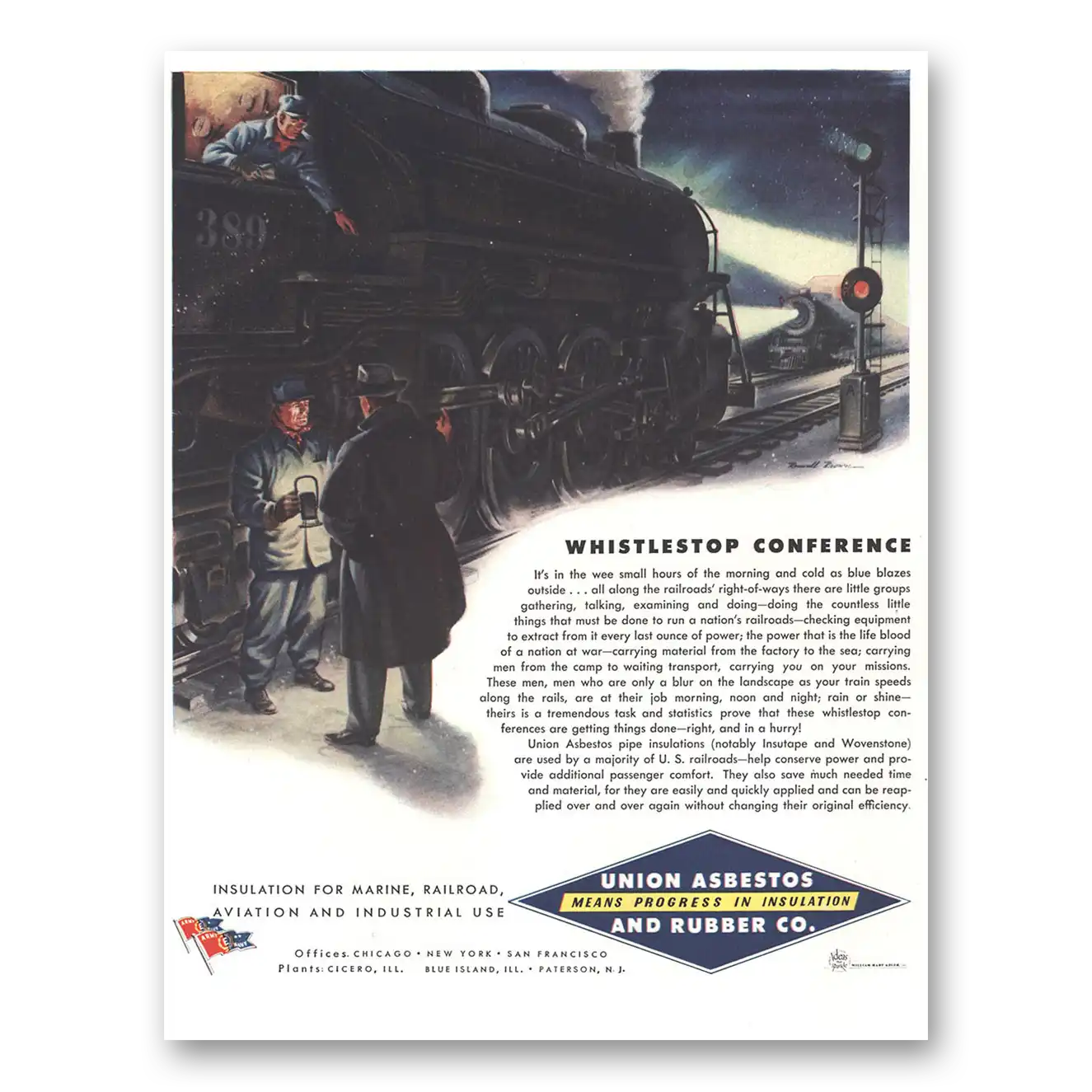 1944 Union Asbestos and Rubber Print Ad | Whistlestop