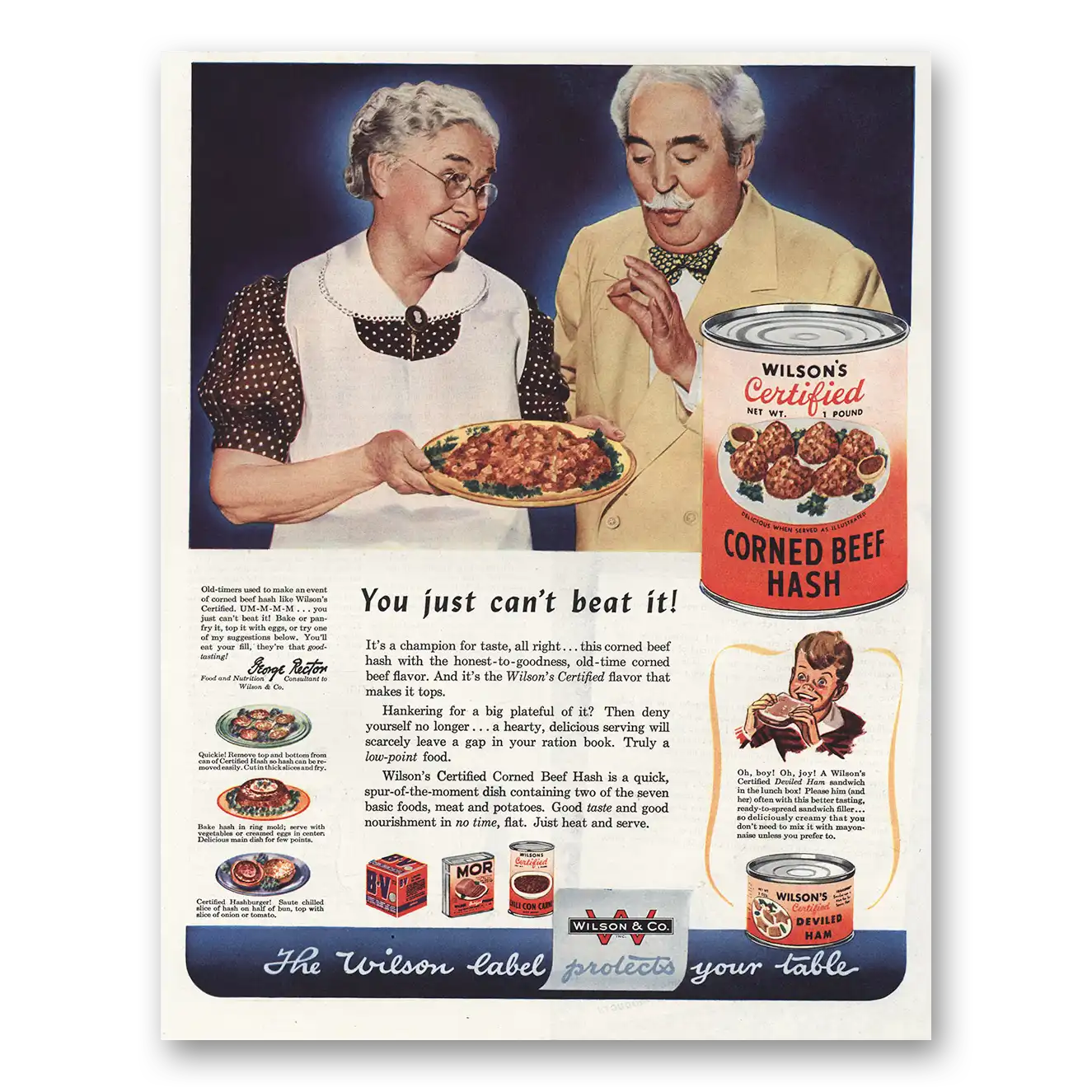 1944 Wilsons Corned Beef Hash Print Ad | Can’t Beat It