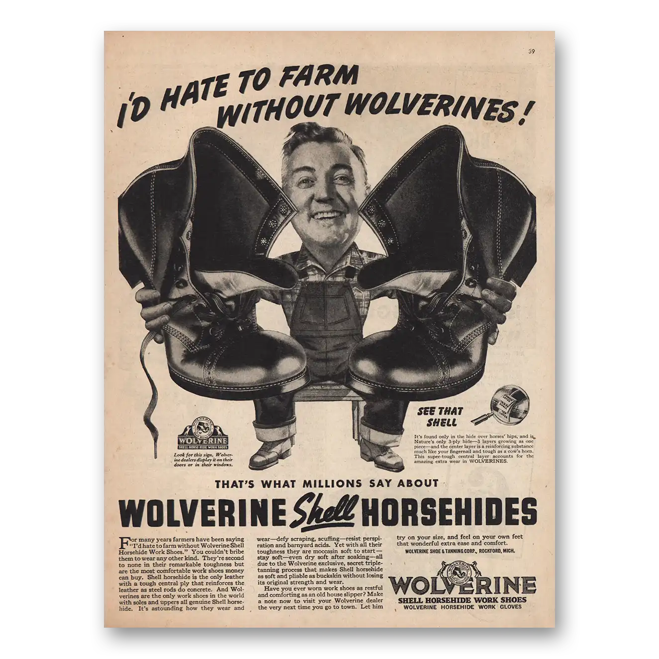 1944 Wolverine Work Shoes Print Ad | Hate To Farm