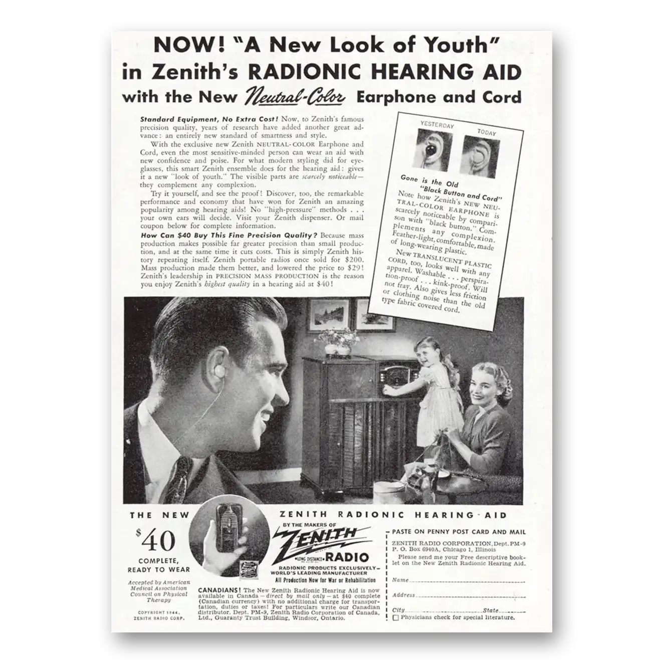 1944 Zenith Hearing Aid Print Ad | Look Youth