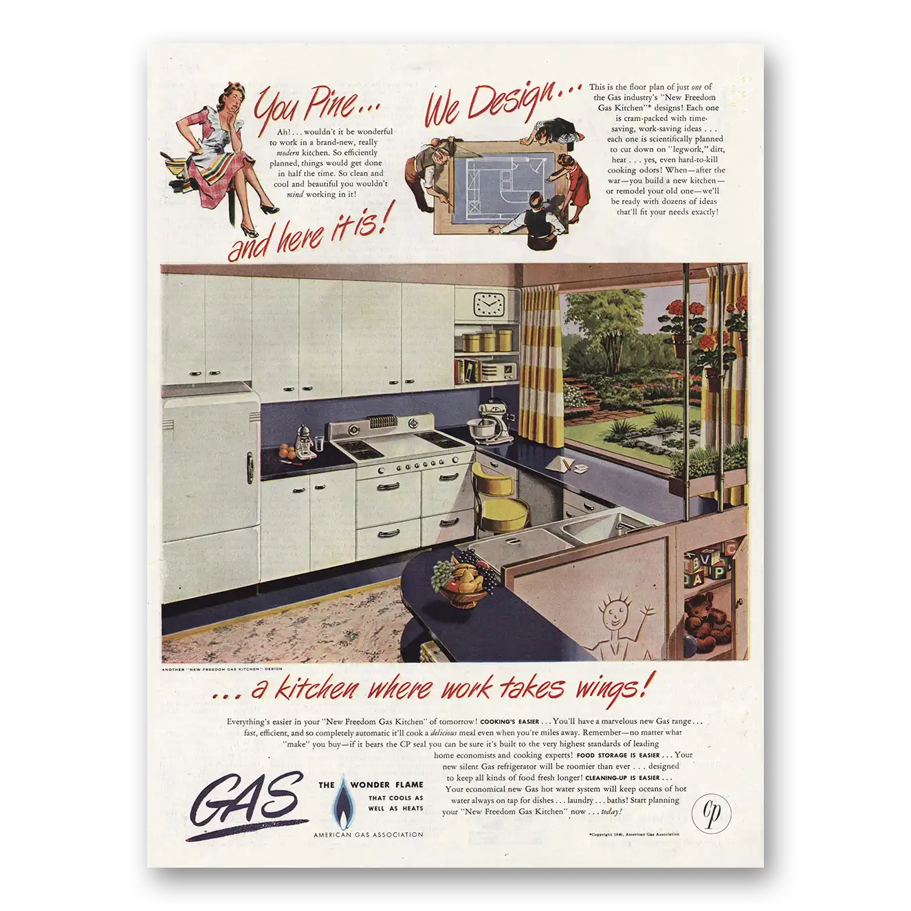 1945 American Gas Print Ad | Kitchen Where Work Takes Wings
