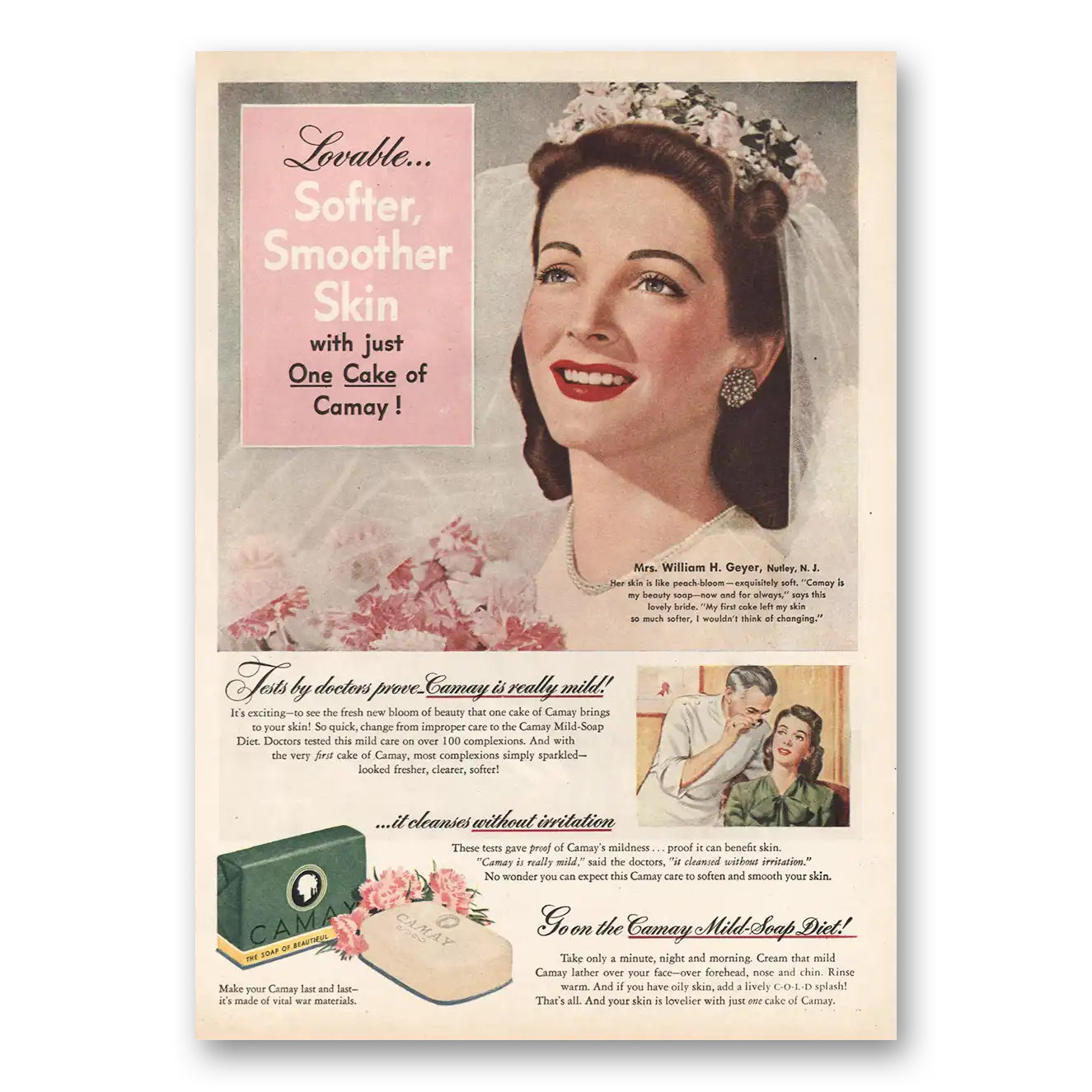 1945 Camay Soap Print Ad | Mrs William H Geyer