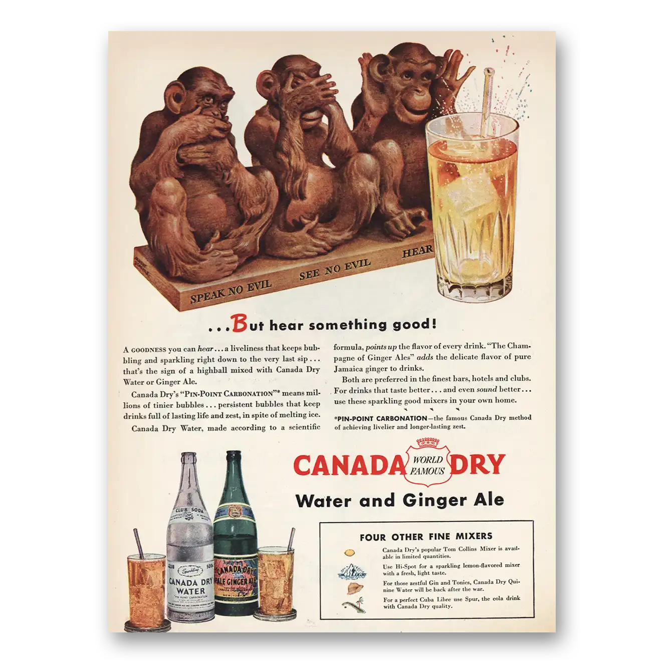 1945 Canada Dry Print Ad | Speak No Evil
