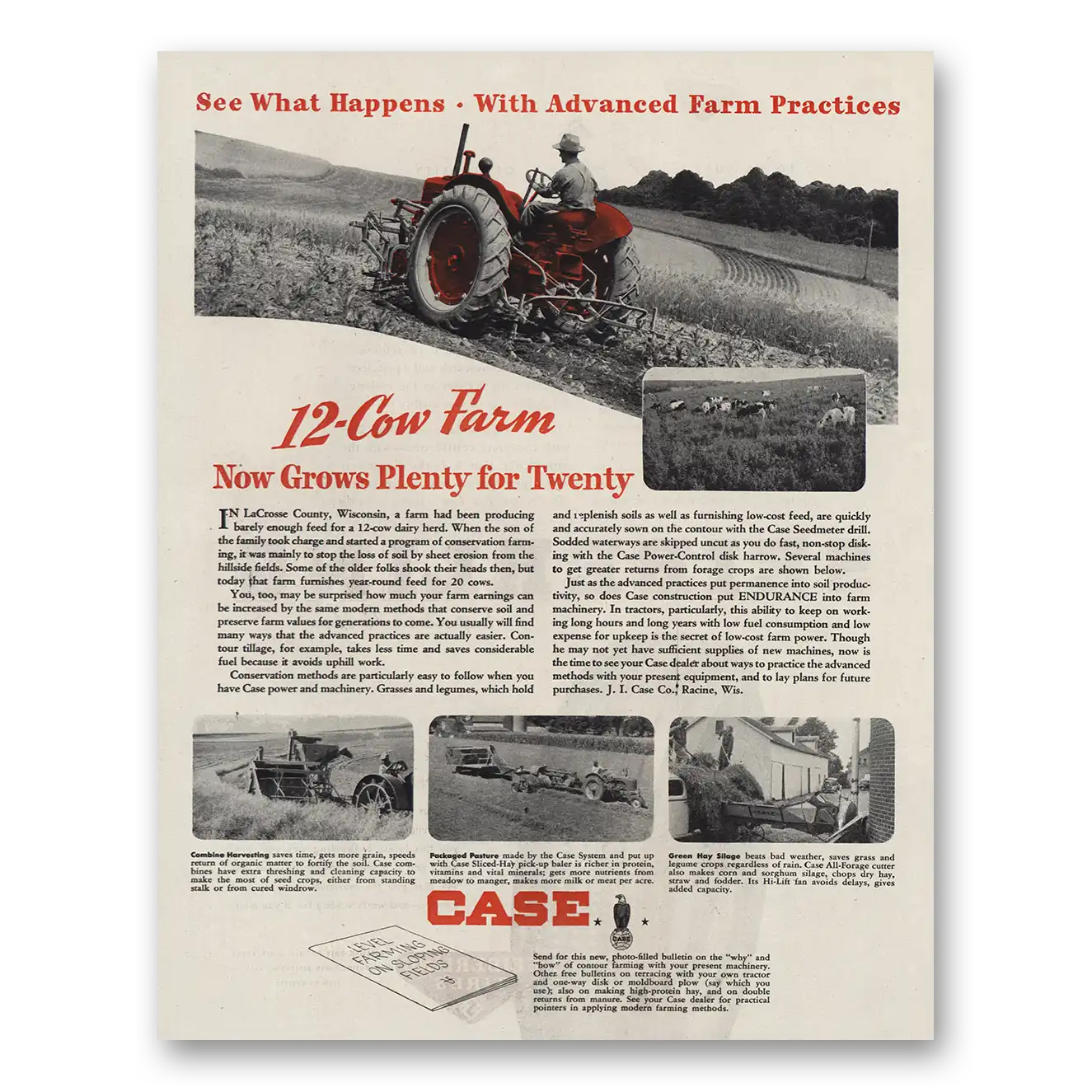 1945 Case Tractors Print Ad | 12 Cow Farm