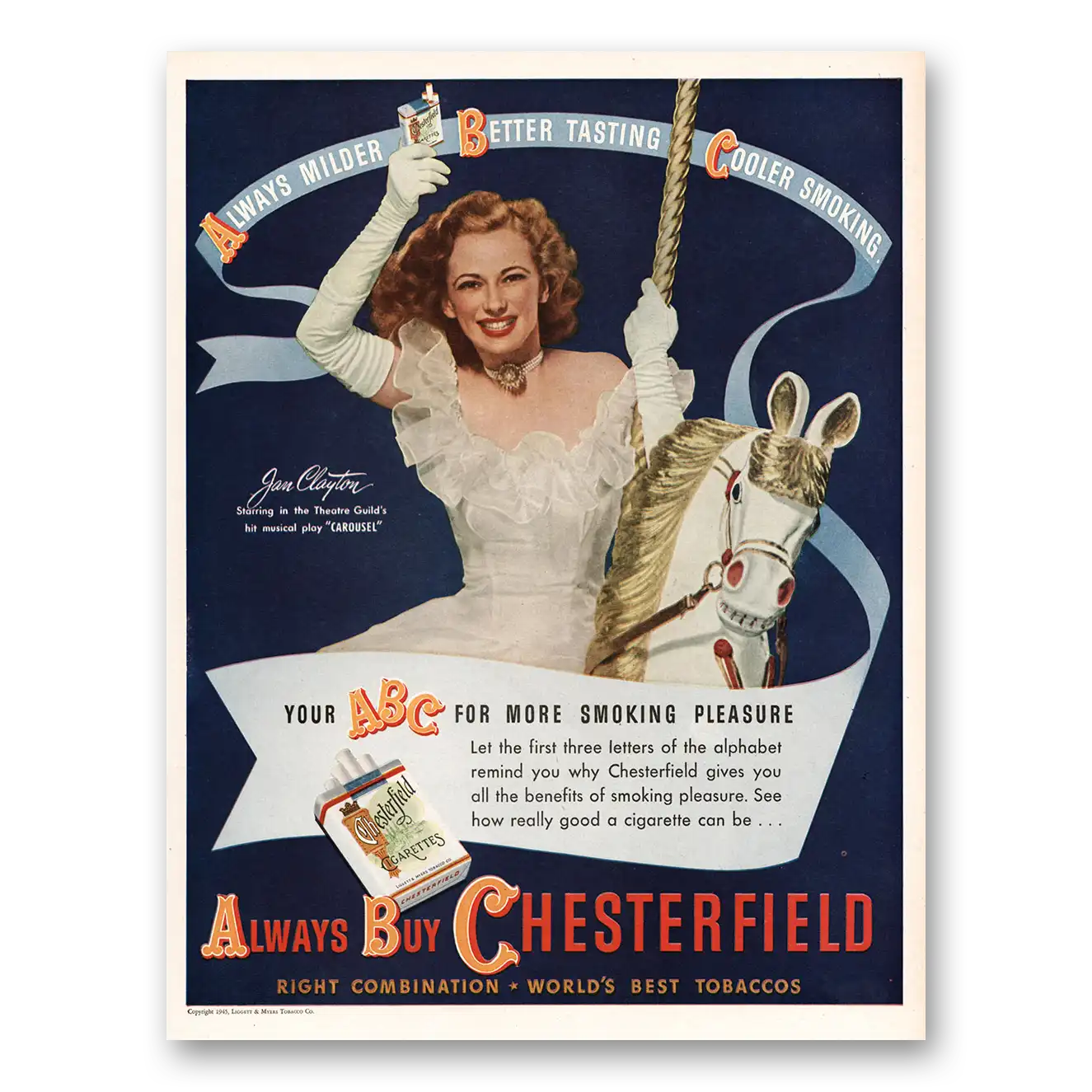 1945 Chesterfield Cigarettes Print Ad | Jan Clayton