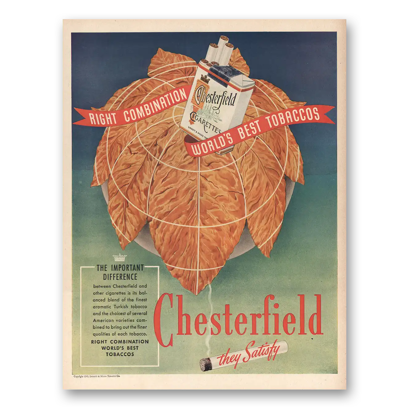 1945 Chesterfield Cigarettes Print Ad | Right Combination