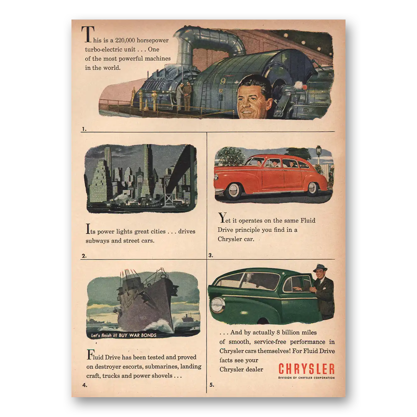 1945 Chrysler Print Ad | Turbo Electric Unit