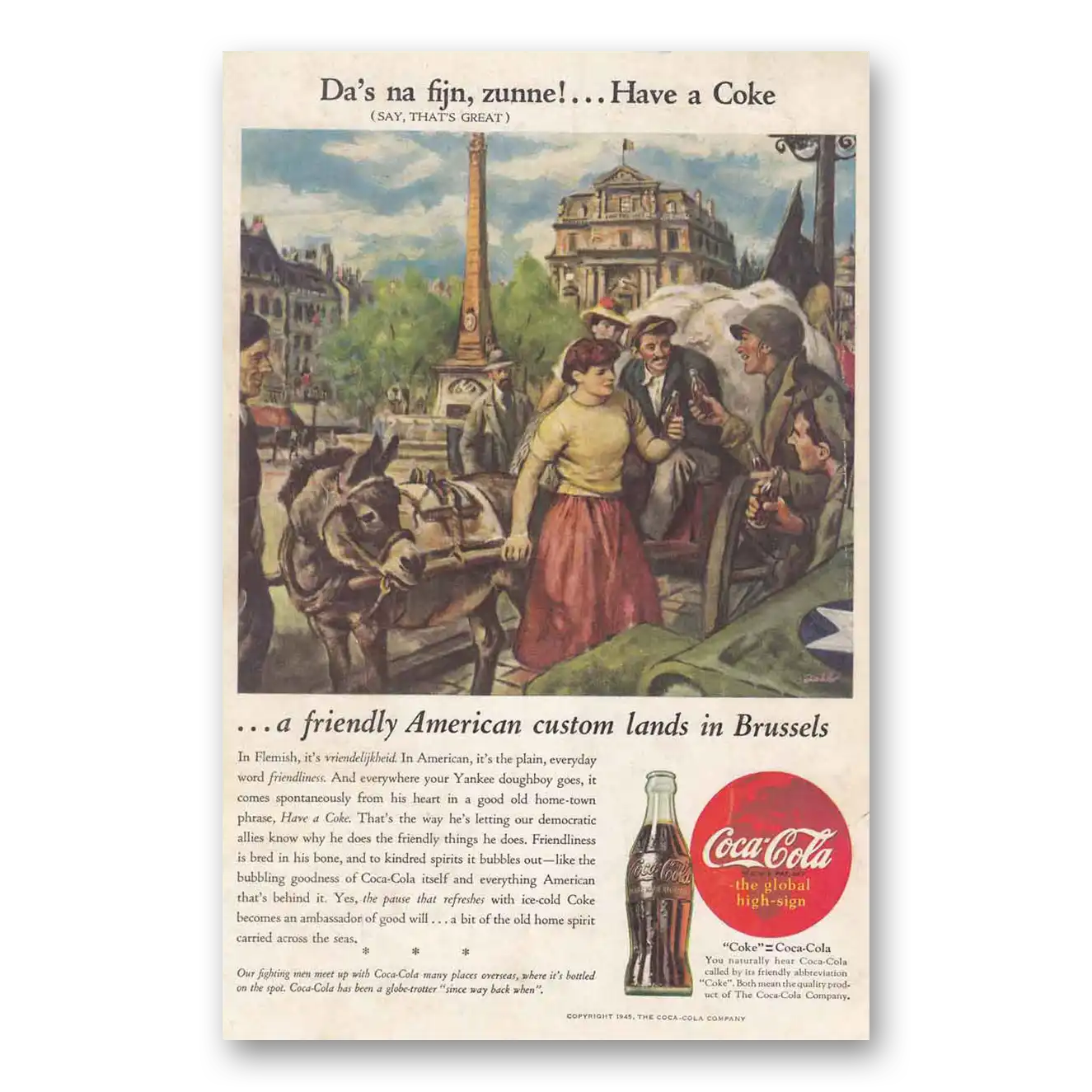 1945 Coca Cola Print Ad | Brussels