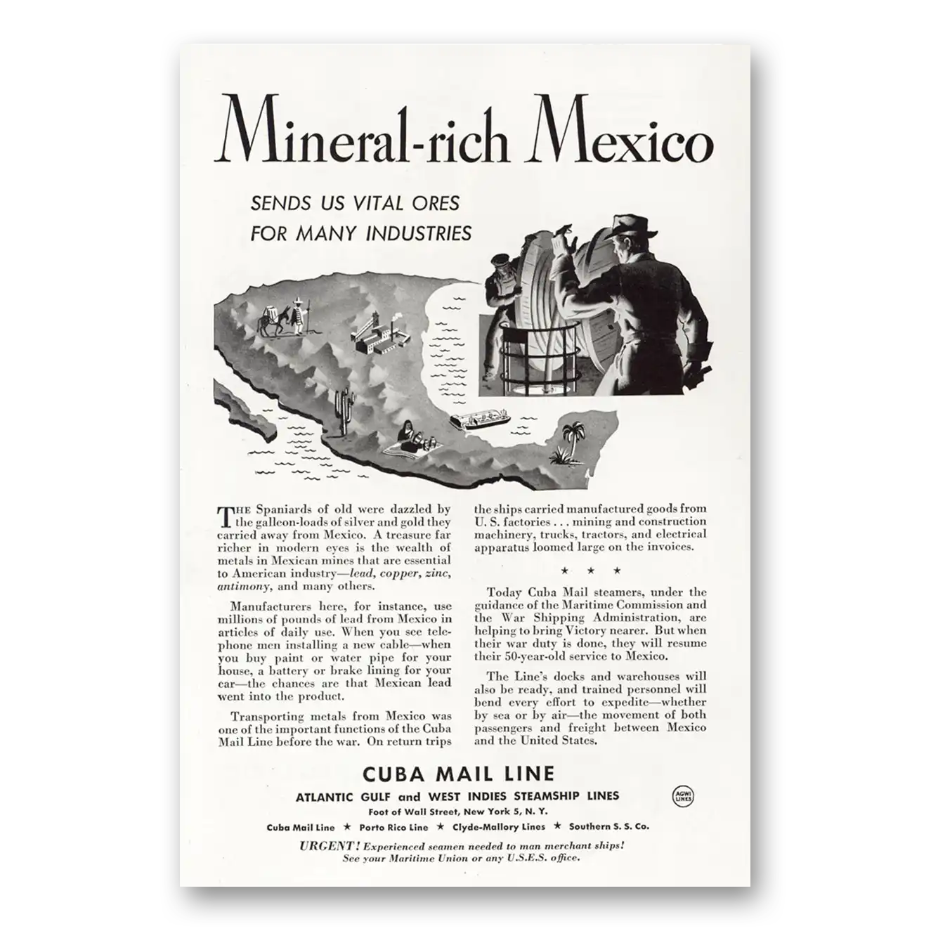 1945 Cuba Mail Line Print Ad | Mineral Rich1945 Cuba Mail Line Print Ad | Mineral Rich
