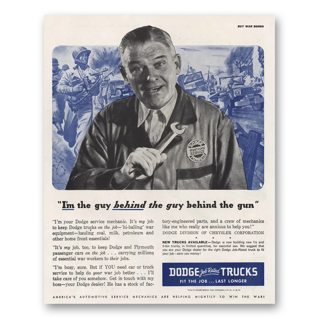 1945 Dodge Trucks Print Ad | Guy Behind Gun