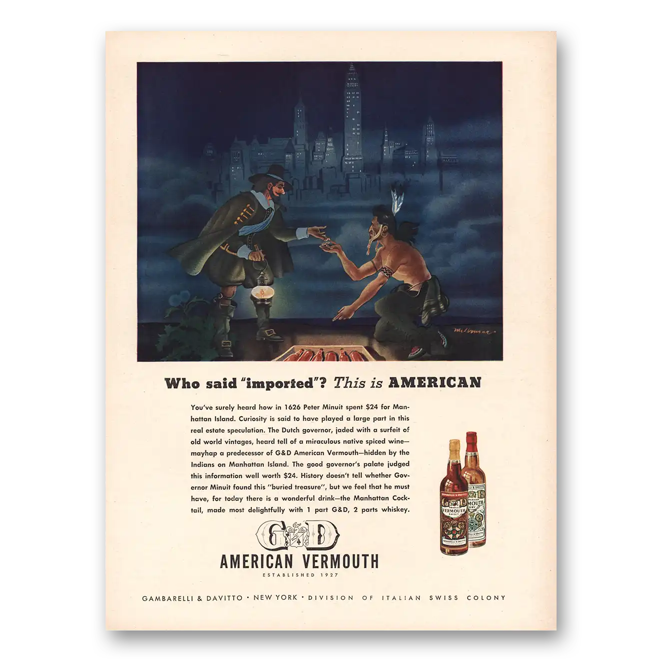 1945 G&D American Vermouth Print Ad | Who Said Imported