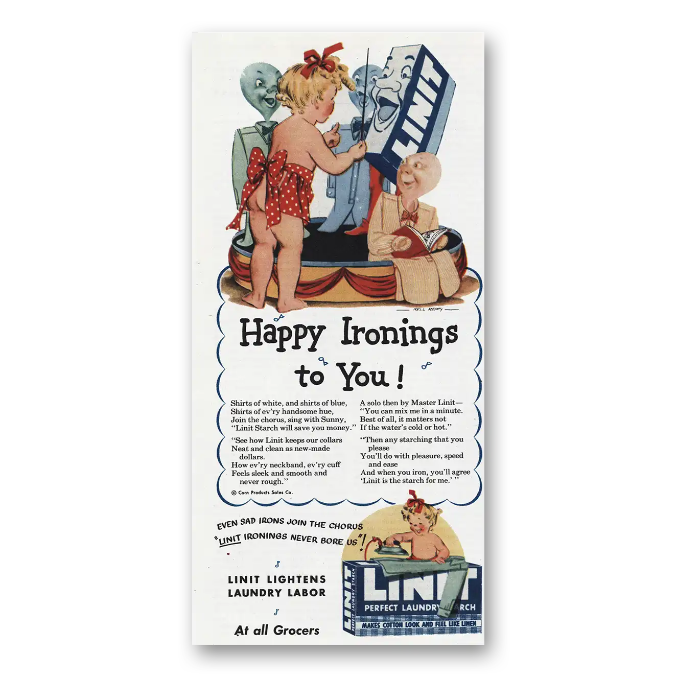 1945 Linit Print Ad | Happy Ironings