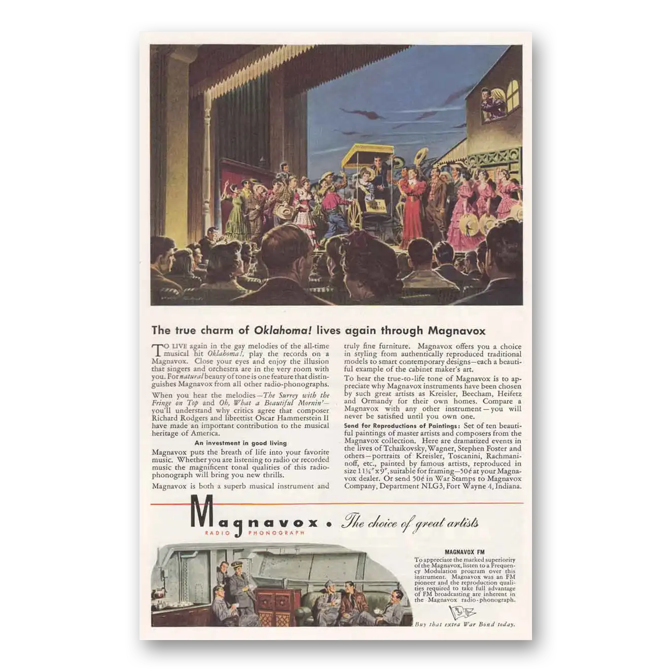 This is an original 1945 Magnavox Radio Phonograph print ad published by Magnavox.