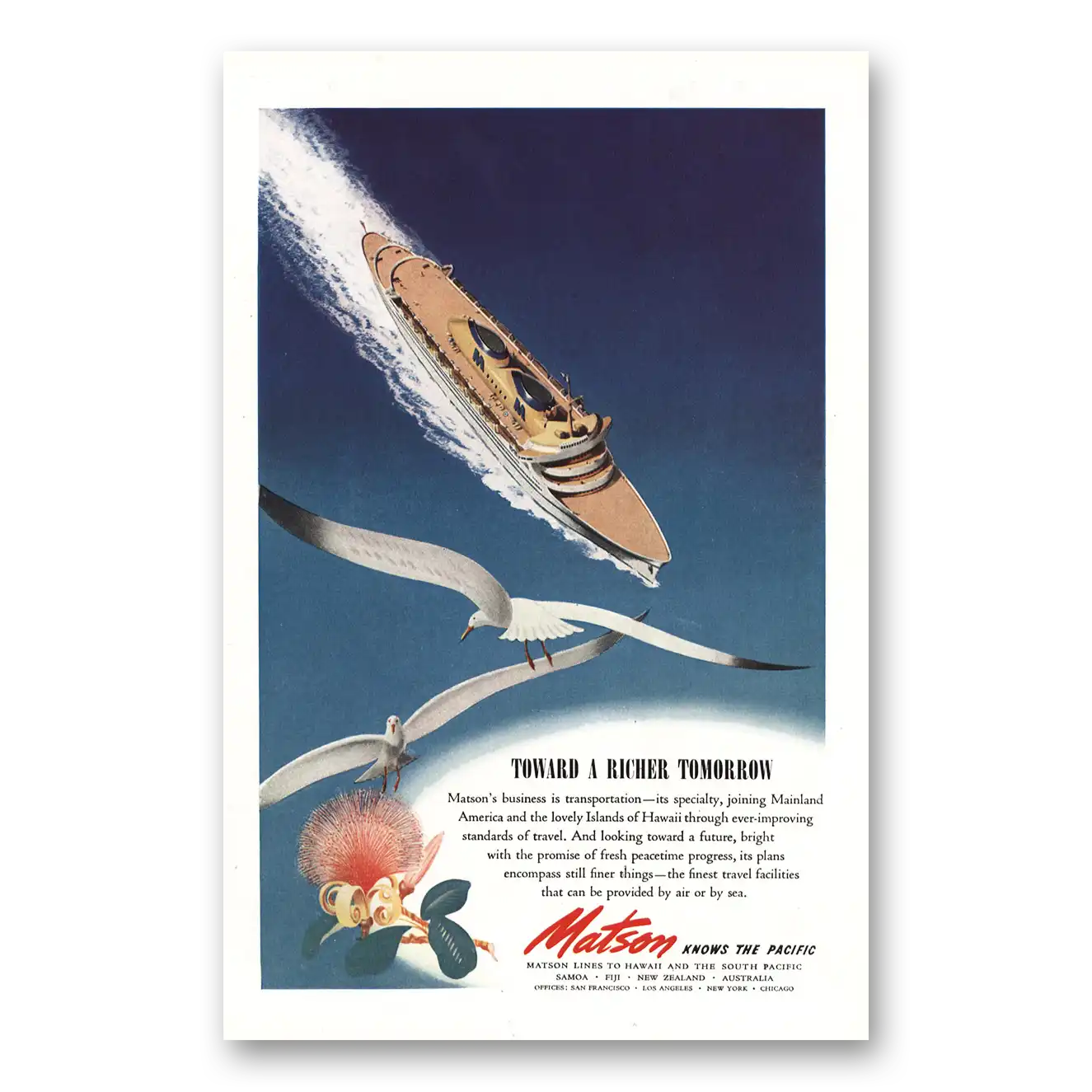 This is an original 1945 Matson Line print ad published by Matson Line.