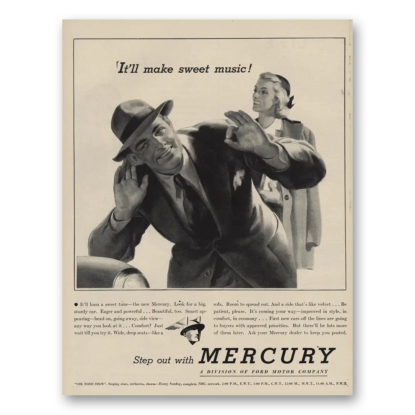 1945 Mercury Print Ad | Make Sweet Music