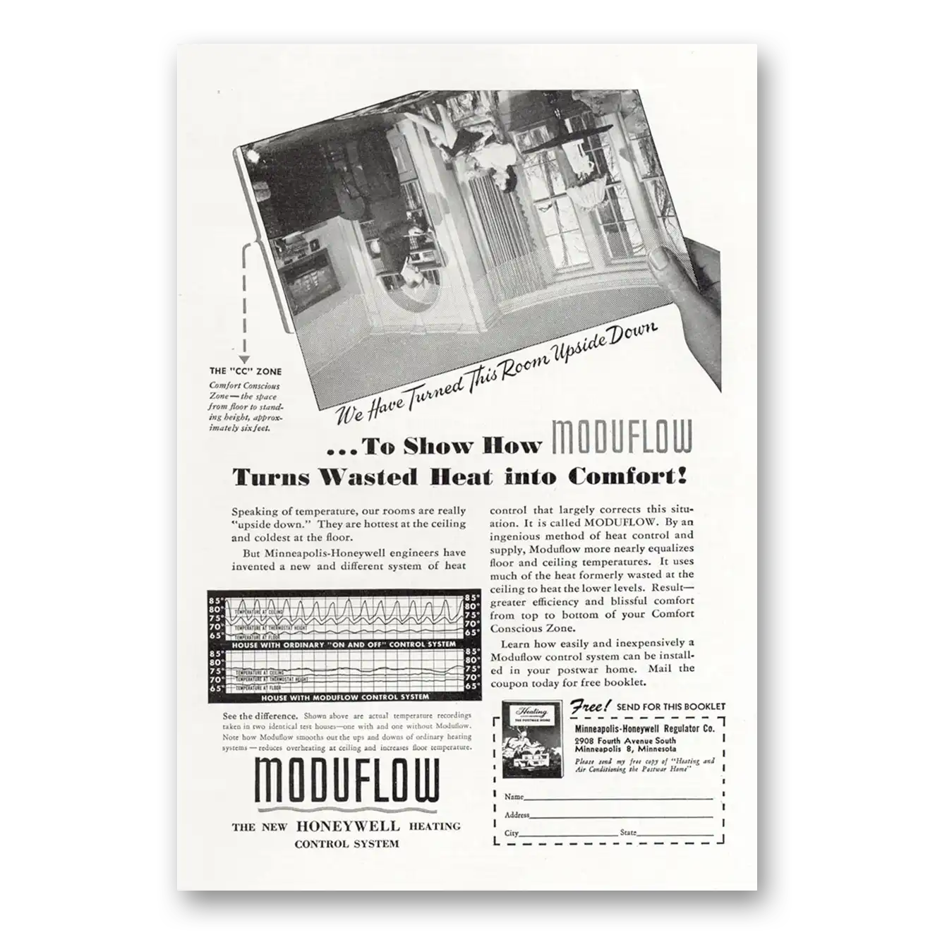 1945 Moduflow Print Ad | Room Upside Down