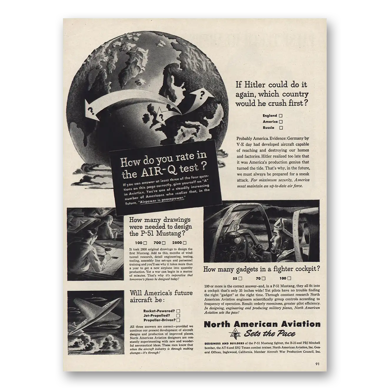 1945 North American Aviation Print Ad | If Hitler Could To It Again