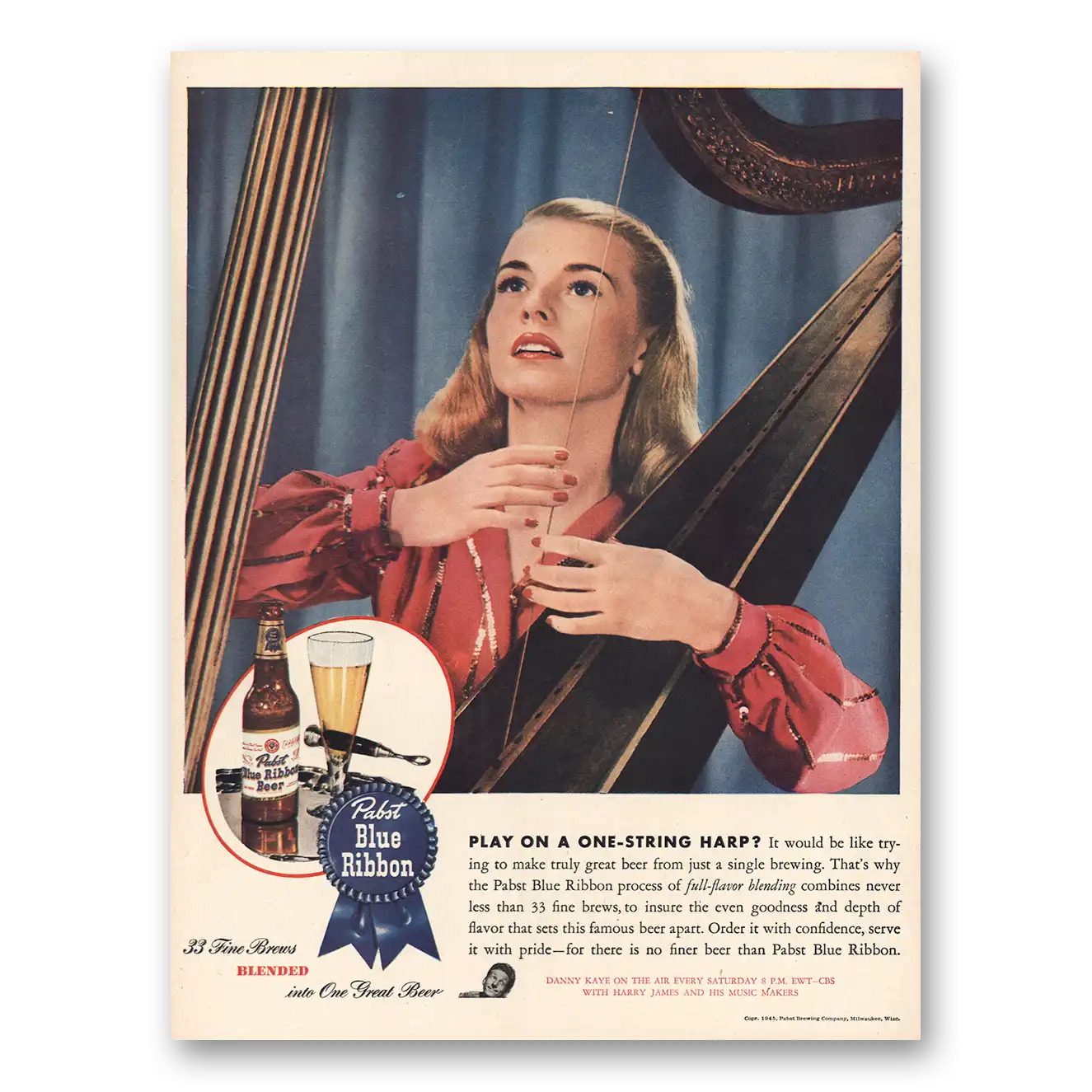 1945 Pabst Blue Ribbon Beer Print Ad | One String Harp