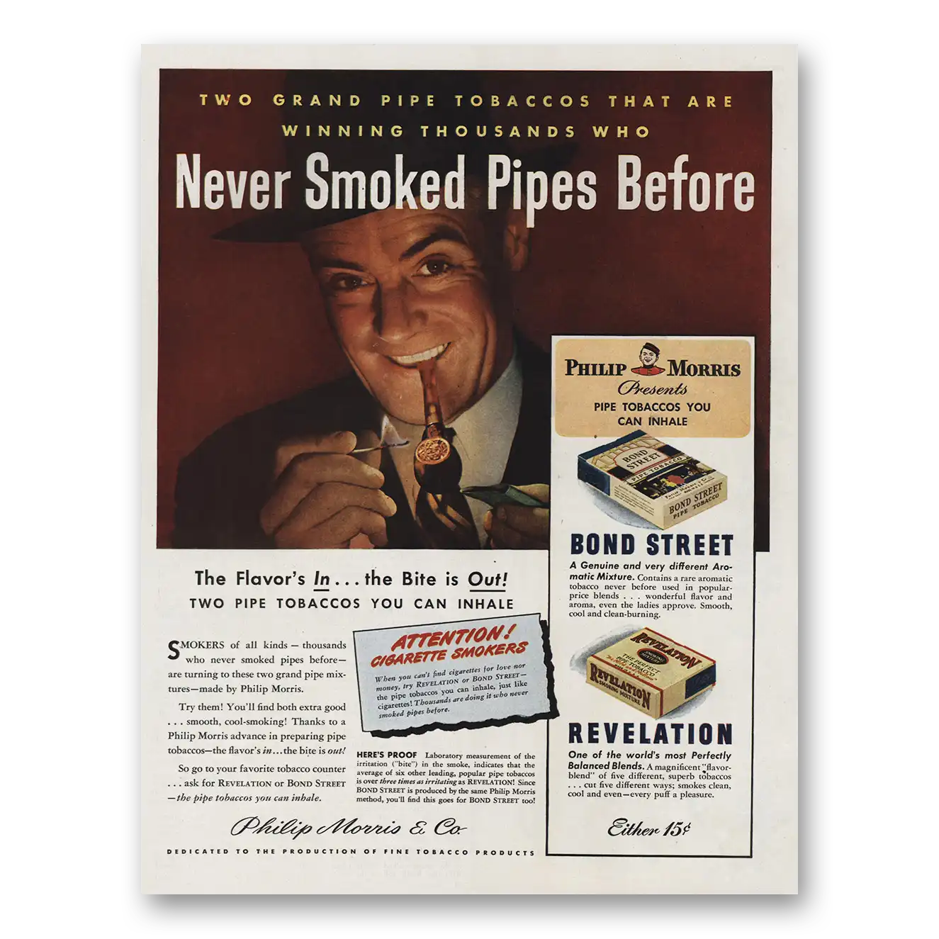 1945 Philip Morris Print Ad | Never Smoked Pipes Before