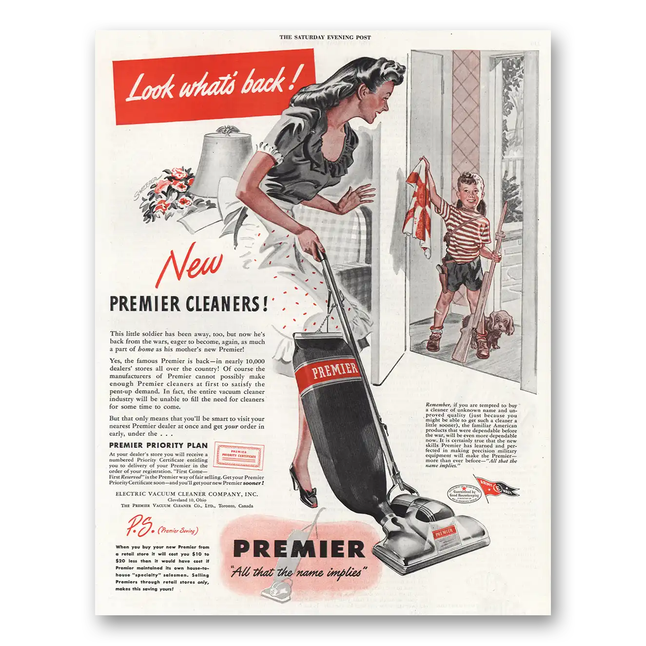 1945 Premier Vacuum Cleaners Print Ad | Look Whats Back