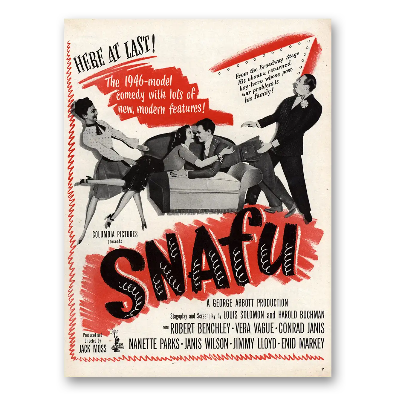 This is an original 1945 Snafu Movie Promo print ad published by Columbia Pictures.