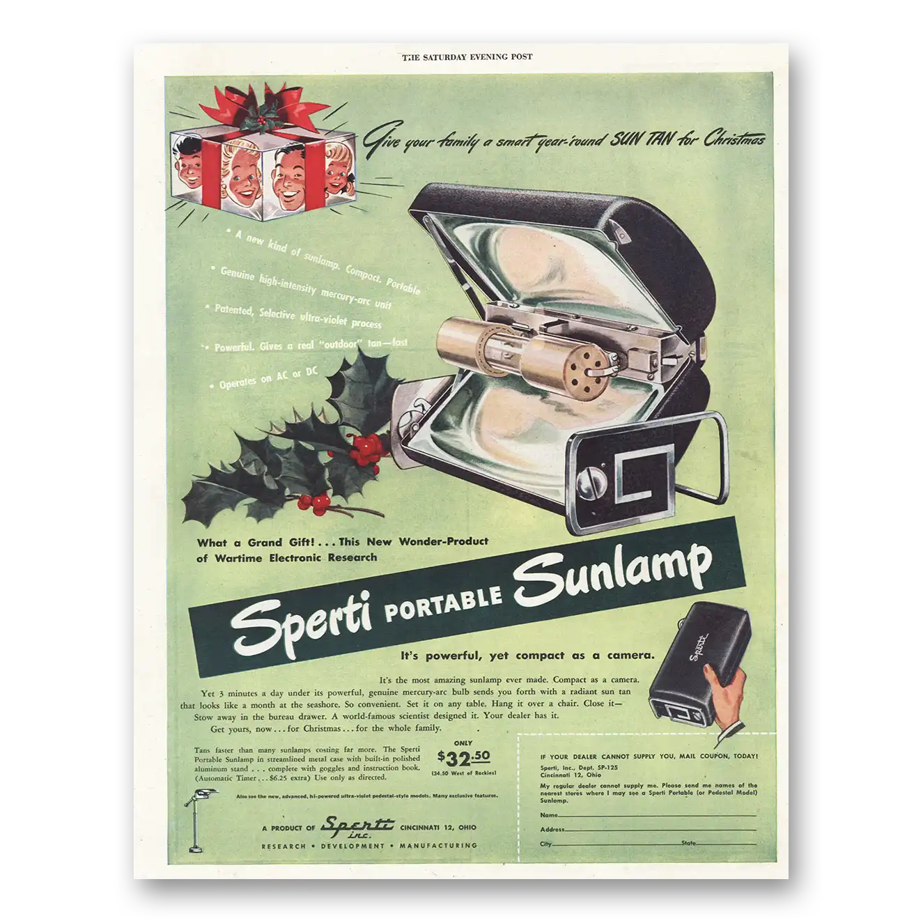1945 Sperti Portable Sunlamp Print Ad | Christmas