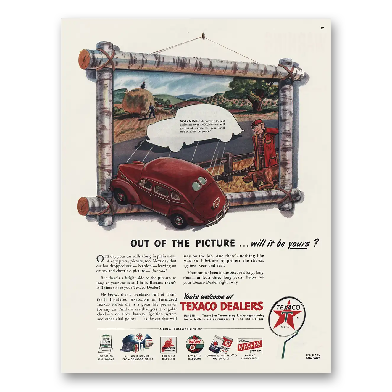 1945 Texaco Print Ad | One Day Your Car Rolls Along
