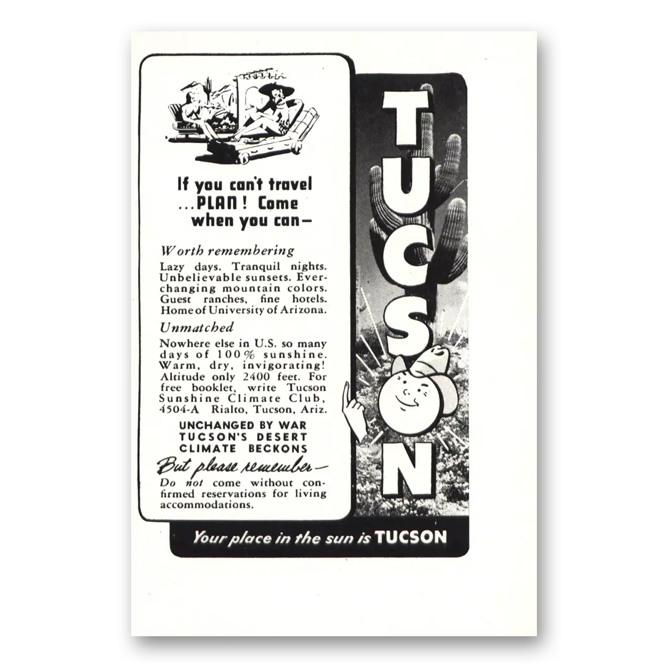 1945 Tucson Arizona Print Ad | Unchanged1945 Tucson Arizona Print Ad | Unchanged
