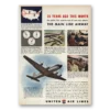 This is an original 1945 United Airlines print ad published by United Airlines.