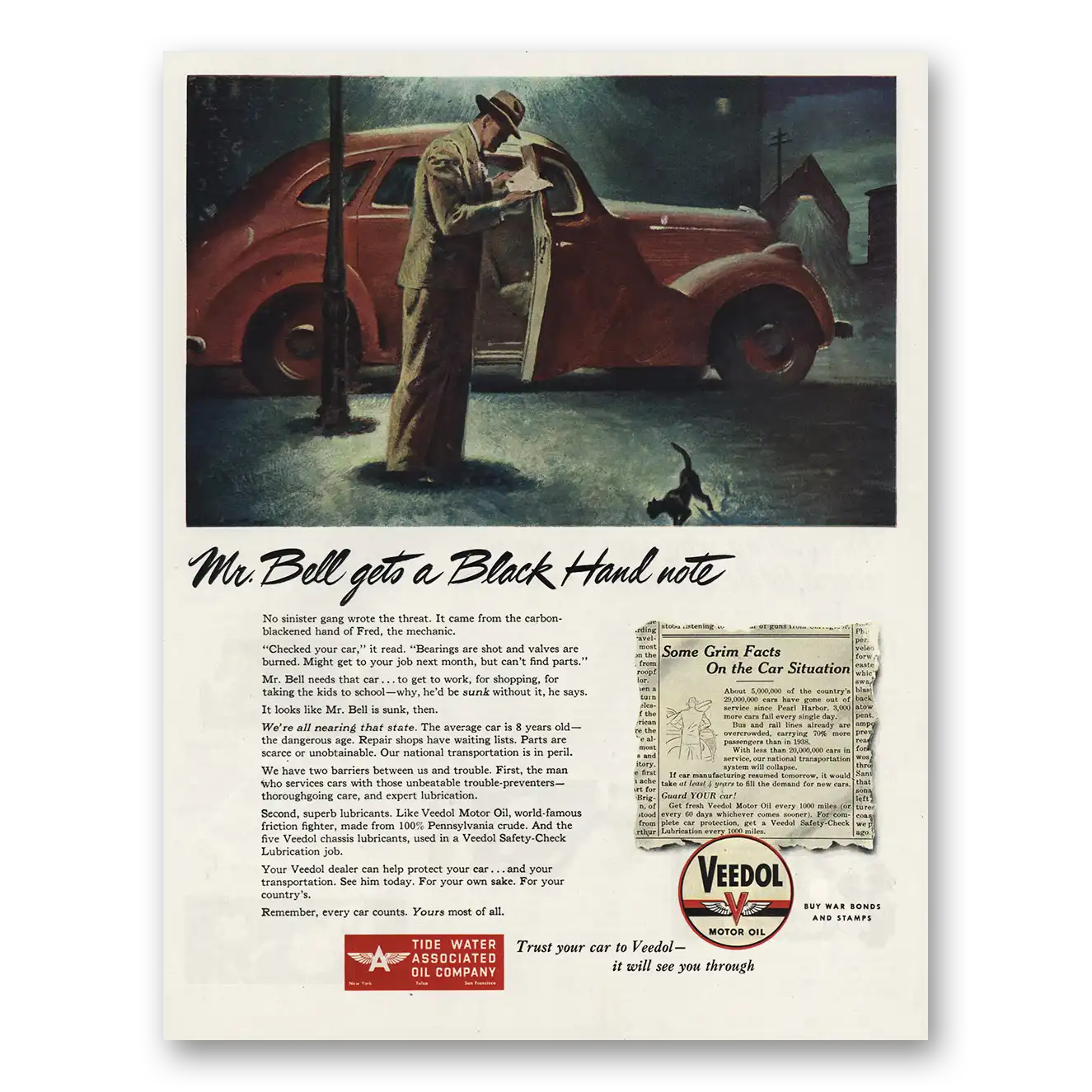 1945 Veedol Motor Oil Print Ad | Mr Bell Gets Black Hand Note