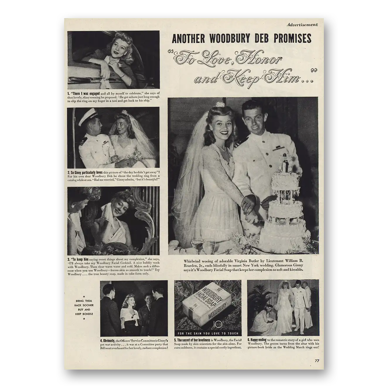 1945 Woodbury Facial Soap Print Ad | Virginia Butler