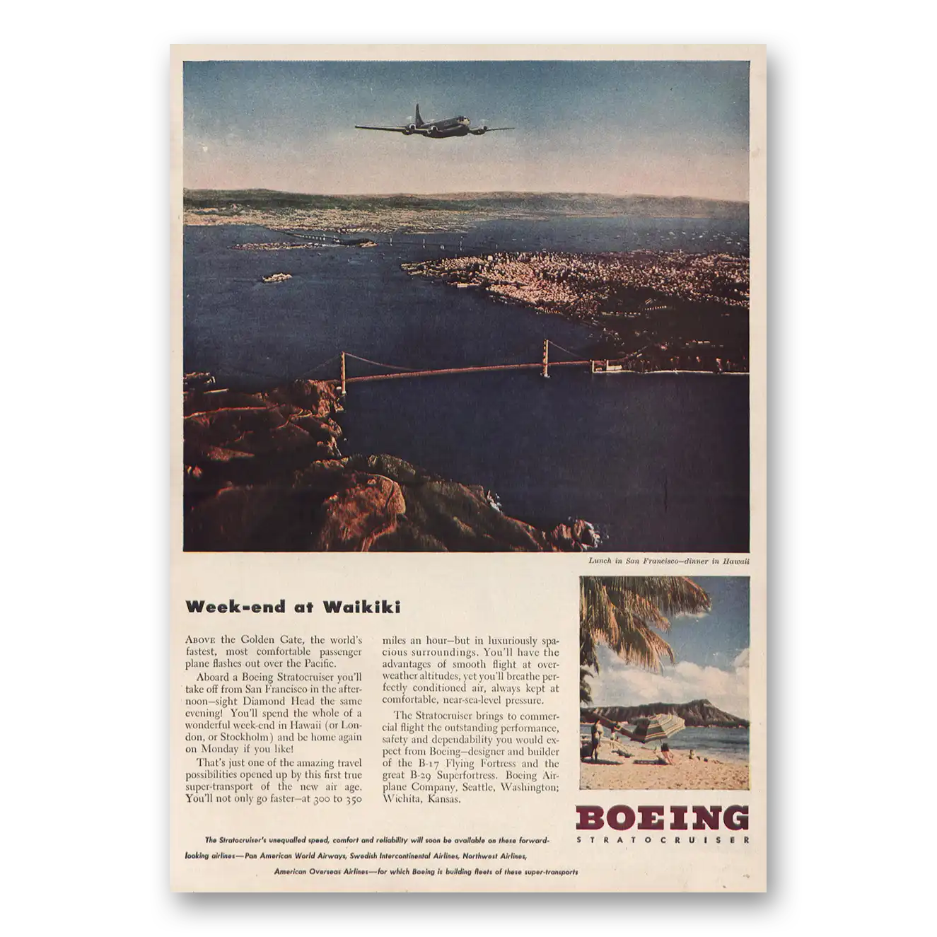 1946 Boeing Stratocruiser Print Ad | Waikiki