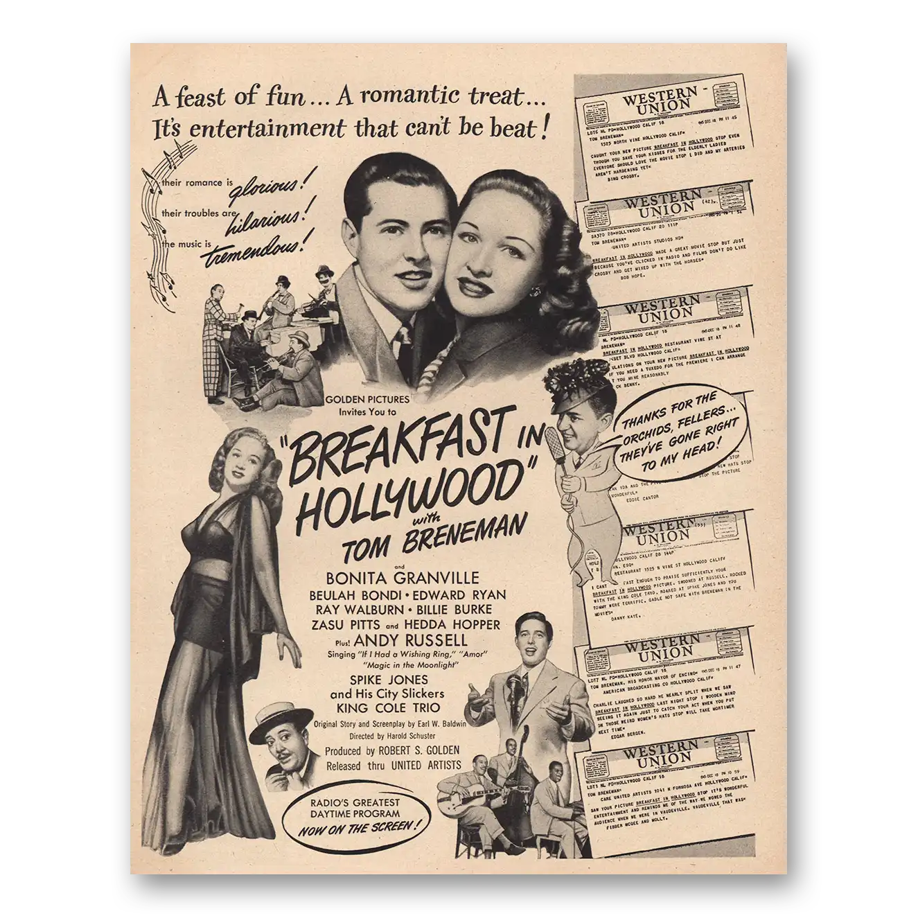 This is an original 1946 Breakfast In Hollywood Movie Promo print ad published by United Artists.