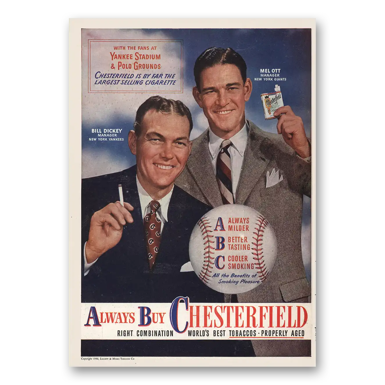 1946 Chesterfield Cigarettes Print Ad | Bill Dickey