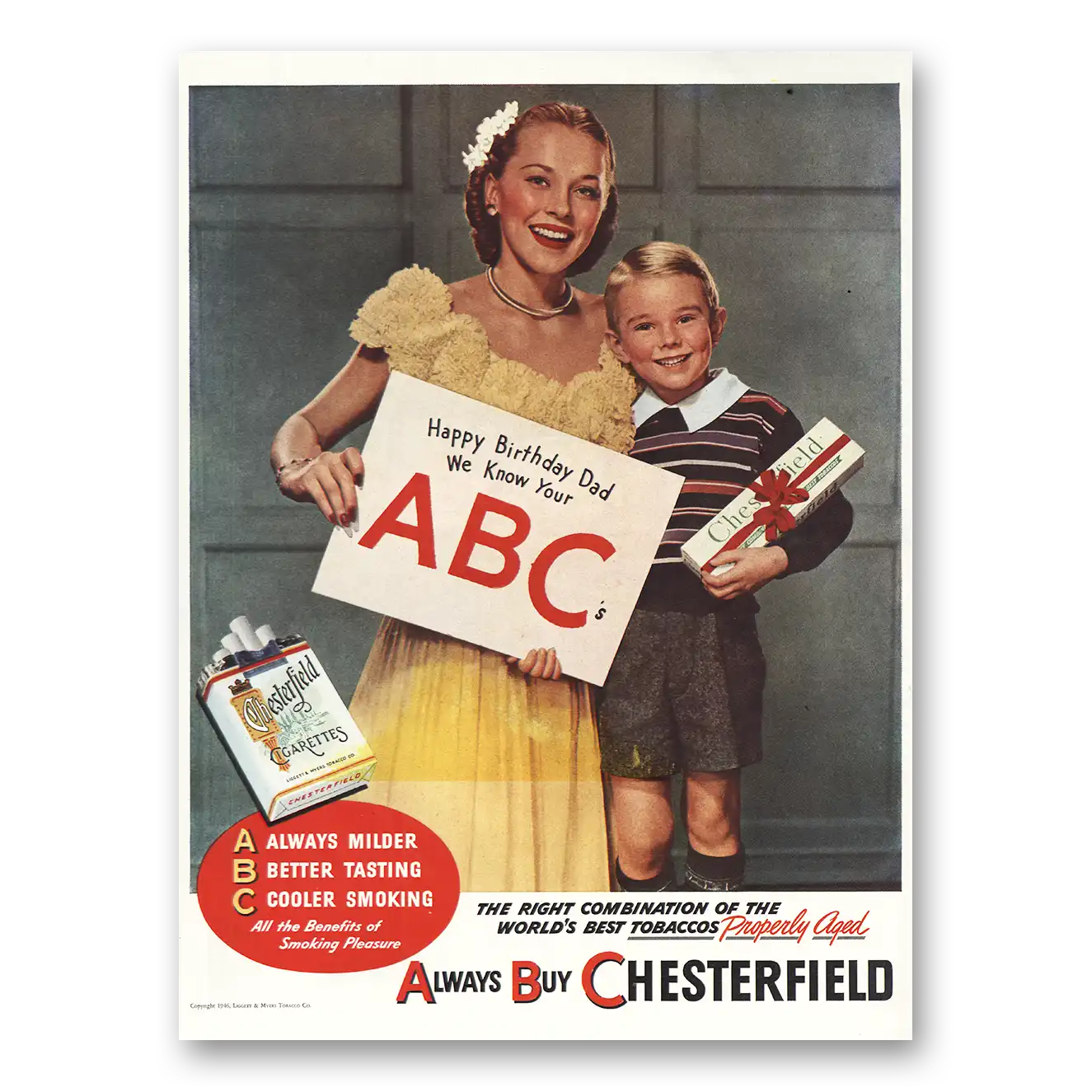 1946 Chesterfield Cigarettes Print Ad | Happy Birthday Dad
