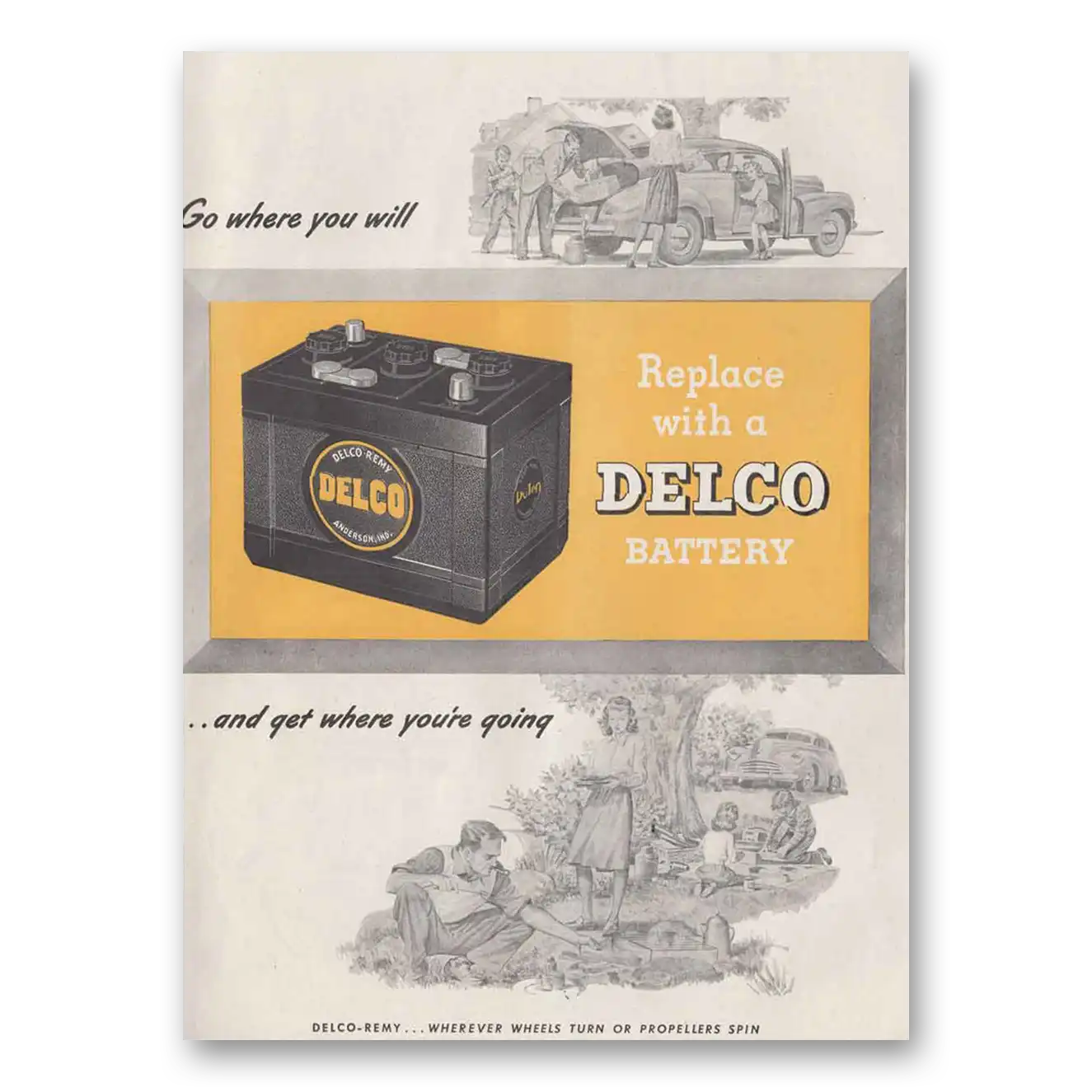 This is an original 1946 Delco Batteries print ad published by Delco.