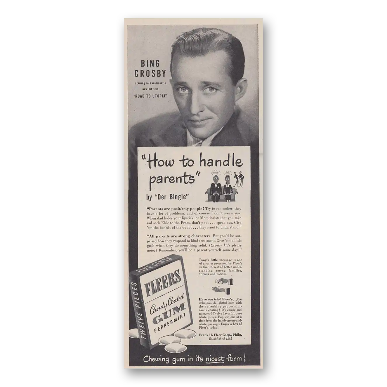 1946 Fleers Candy Coated Gum Print Ad | Bing Crosby