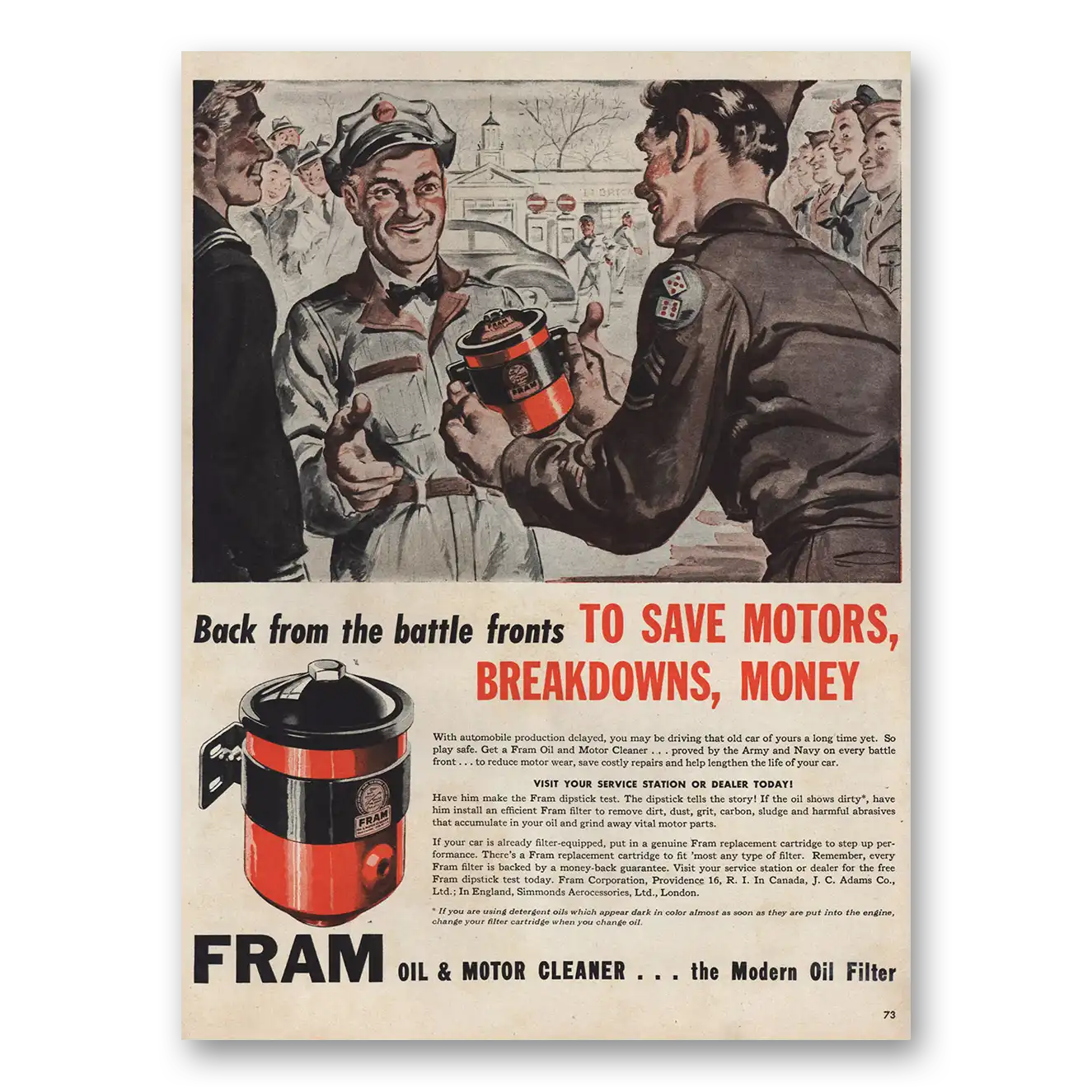 1946 Fram Oil Print Ad | Battle Fronts