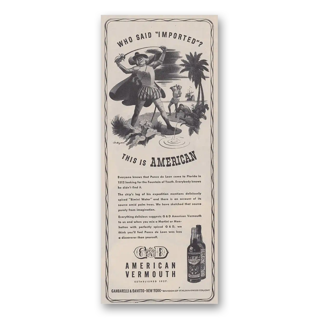 Tags: 1940s, 1946, Black + White Print Ad, G&D American Vermouth, Gambarelli & Davitto